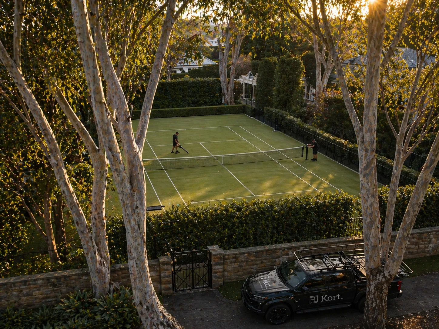 Kort is a specialist tennis court management firm based in Melbourne. We manage private synthetic grass and acrylic courts across Toorak, Brighton, Kew, Canterbury, Malvern, Hawthorn, Kooyong, Mt Eliza, Portsea and surrounds. Every visit is documented with photographs and a written condition report. Insured. ITF-specification. On a calendar.